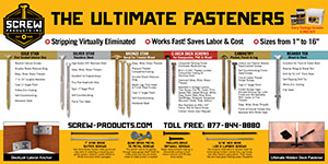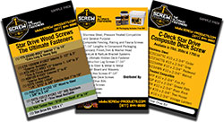 Professional Header card features our full line of Star Drive Screws & Decking Products! This eye catching point of sales selling aid is designed to help increase product knowledge and selling ease. 1’x2’ board.