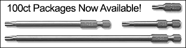 Our Star Drive screws work with standard T series star drive bits. For the Ultimate Wood Screw you need to Ultimate Star Drive Bits! Our bits are milled with a heat treated hardened steel! The perfect bit to head contact allows over head installation with ease. Star Drive offers twice the torque of Phillips or square. 1"-6" lengths.